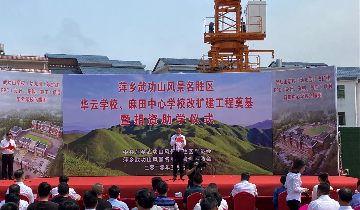 儀式上,區(qū)黨委書記李水清作了熱情洋溢的致辭,代表區(qū)黨委、管委會,向各位領導、各位貴賓,表示最熱烈的歡迎和最真摯的感謝!李水清介紹了武功山風景名勝區(qū)近年來景區(qū)建設和民生事業(yè)所取得的成績,重點介紹了該區(qū)堅持教育優(yōu)先發(fā)展戰(zhàn)略,努力辦好人民滿意的教育,大力推進義務教育均衡發(fā)展,切實抓好教育扶貧工程等方面所取得的成績。同時也講到,我們要正視差距,集中發(fā)力,進一步加大投入,以華云學校、麻田中心學校改擴建為突破口,努力改善辦學條件,提高辦學水平。李水清感謝廣東省鴻發(fā)慈善基金會、感謝劉楊華先生,為該區(qū)教育發(fā)展慷慨解囊,捐贈巨資,認為這不僅是對山區(qū)學校師生的拳拳關愛,更是對武功山教育事業(yè)巨大支持和鼓舞。并表示,武功山人將以感恩之心,把這一份關愛化為動力,勵精圖治,拼搏進取,把學校辦成社會放心、人民滿意的學校,相信武功山的教育事業(yè)必將借勢起飛,順風揚帆,再上新的臺階,再創(chuàng)新的輝煌。廣東鴻發(fā)集團董事長助理麥子俊先生、萍鄉(xiāng)第五建筑工程責任有限公司武功山公司總經(jīng)理劉楊華先生分別講話,廣東匯華建設集團有限公司經(jīng)理姚錦永先生作了發(fā)言,華云學校學生周美優(yōu)代表全體師生致感謝詞。
