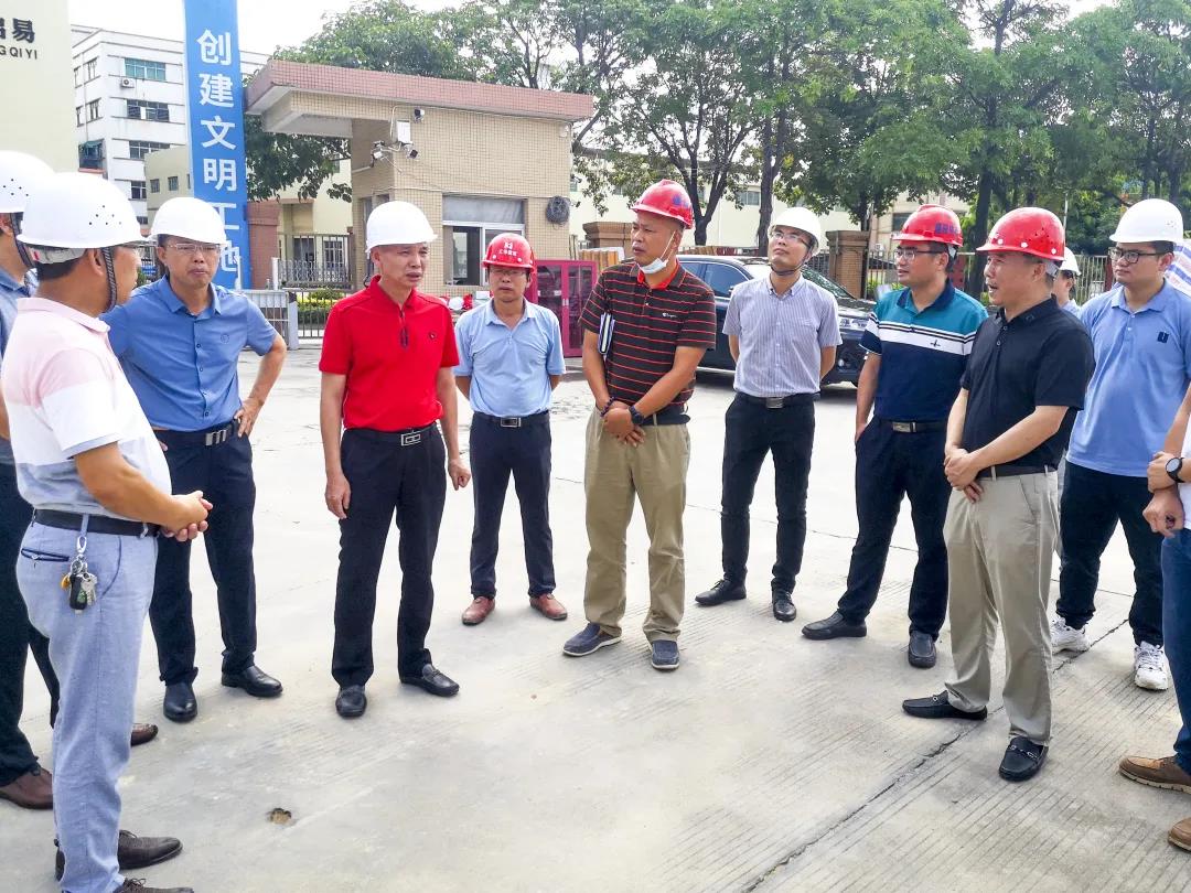 5月27日,茶山鎮黨委書記黃錦發一行蒞臨茶山三小、茶山中學改擴建項目建設工地檢查,就項目工程質量與進度做出重要指示。匯華集團常務副總經理董桃元陪同檢查。