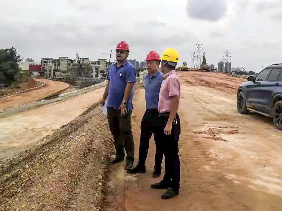 6月17日,茶山鎮重點辦領導到茶山中學項目檢查指導,匯華集團副總經理廖志峰陪同檢查,并為茶山鎮重點辦領導講解項目施工情況。 三、追求卓越 麥照華董事長到惠龍3標視察指導