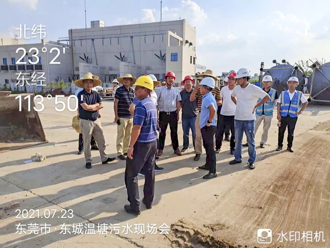 7月27日,東莞市副市長萬卓培一行到溫塘污水處理廠視察,為其開工做現(xiàn)場指導。水投蔡總、鴻高張總、匯華集團副總經(jīng)理廖志峰等領導陪同視察。