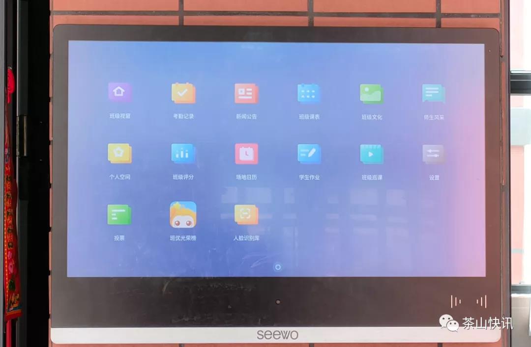 ▲每個教室外配備電子班牌,實現(xiàn)班級數(shù)字化管理及智慧德育